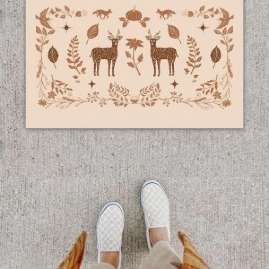 Dijital Baskı Dekoratif Geyik Pudra Kapı Önü Paspası K-1215