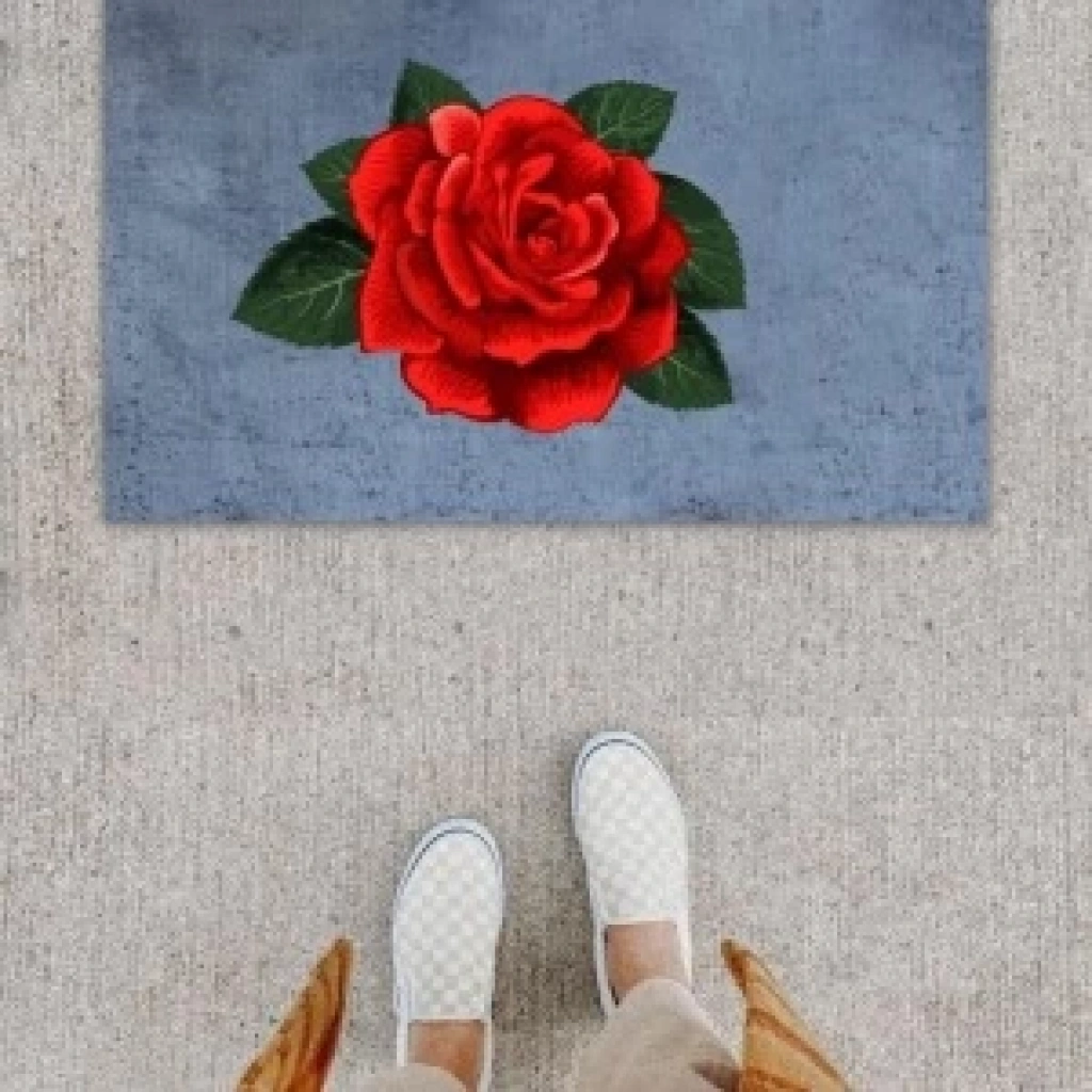 Dijital Baskı Dekoratif Gül Antrasit Kapı Önü Paspası K-1295