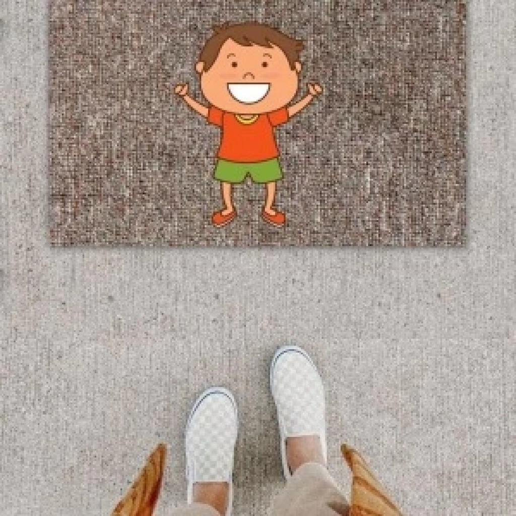 Dijital Baskı Dekoratif Gülen Çocuk Gri Kapı Önü Paspası K-1286