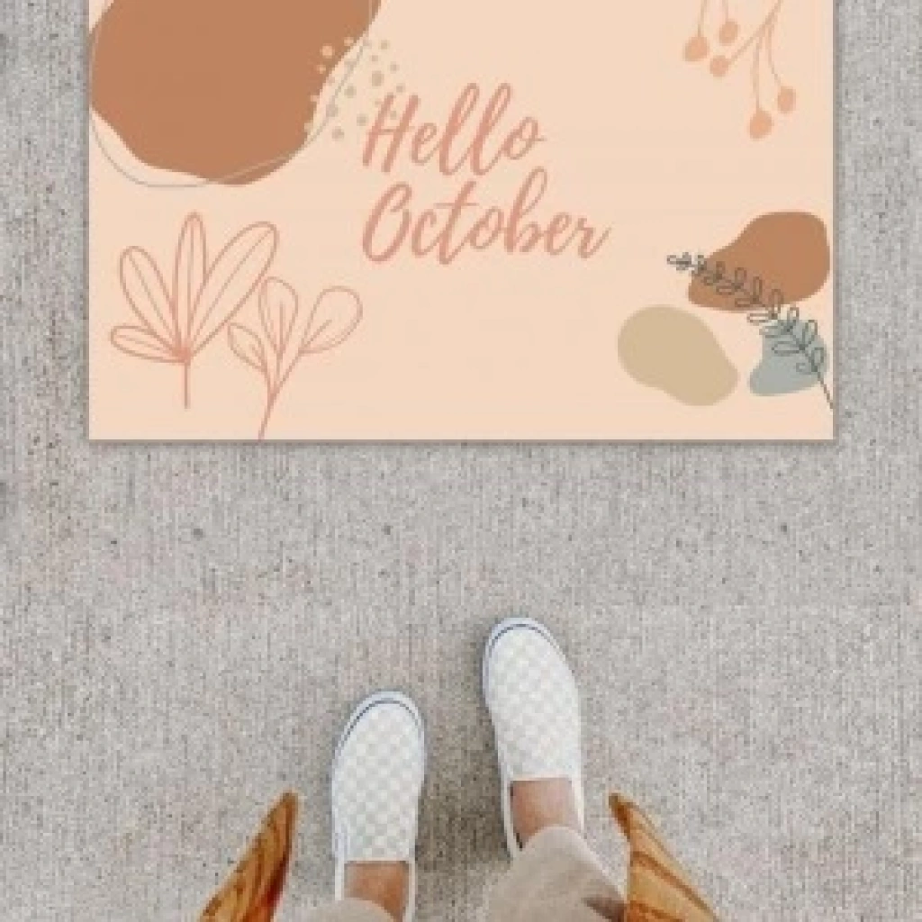 Dijital Baskı Dekoratif Hello October Pudra Kapı Önü Paspası K-1224