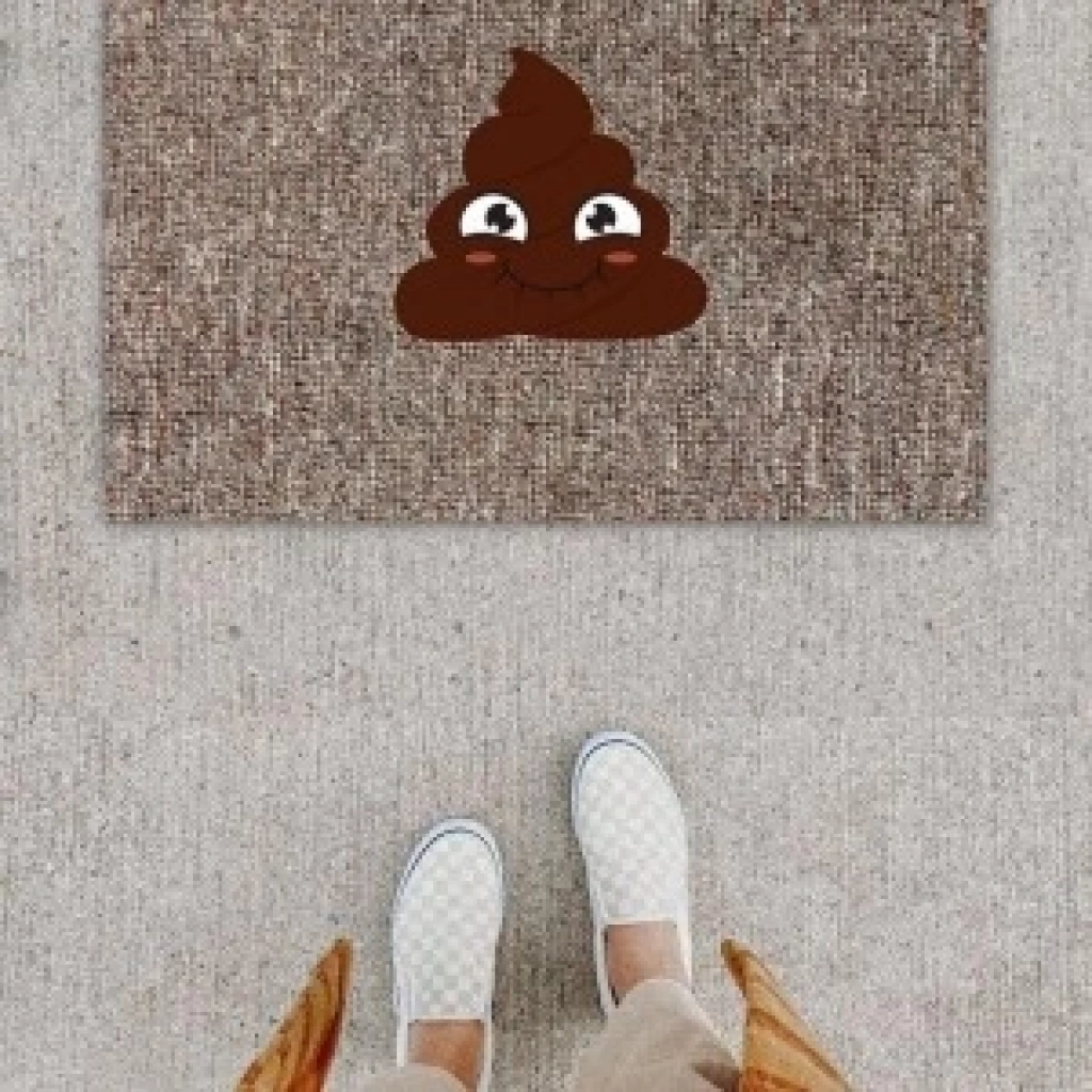 Dijital Baskı Dekoratif Kaka Emoji Gri Kapı Önü Paspası K-1289