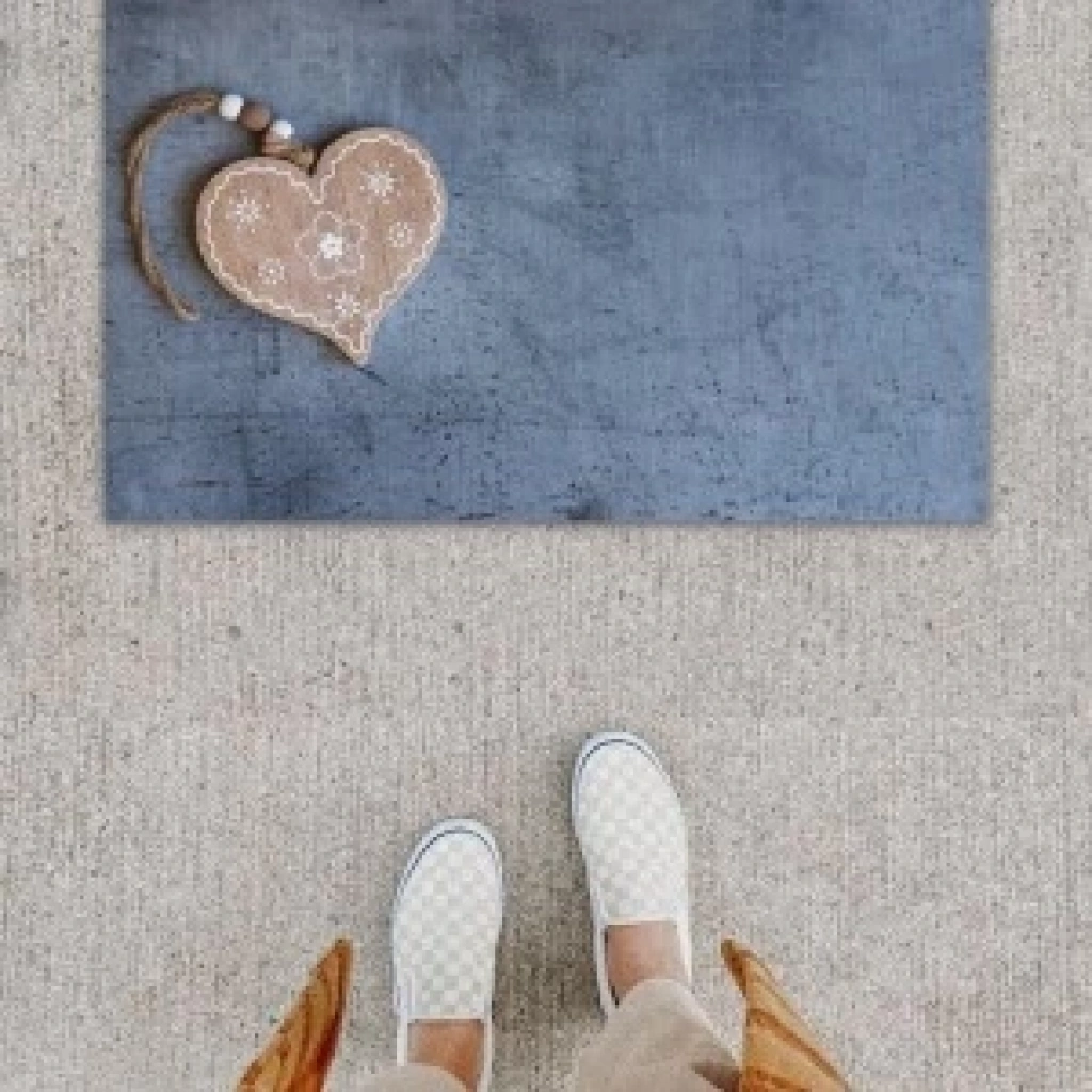 Dijital Baskı Dekoratif Kalp Antrasit Kapı Önü Paspası K-1291