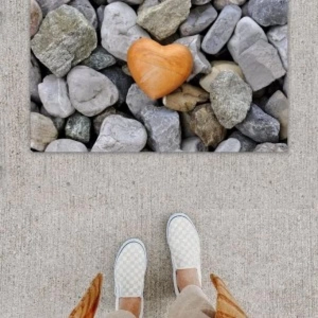 Dijital Baskı Dekoratif Kalp Gri Kapı Önü Paspası K-1250