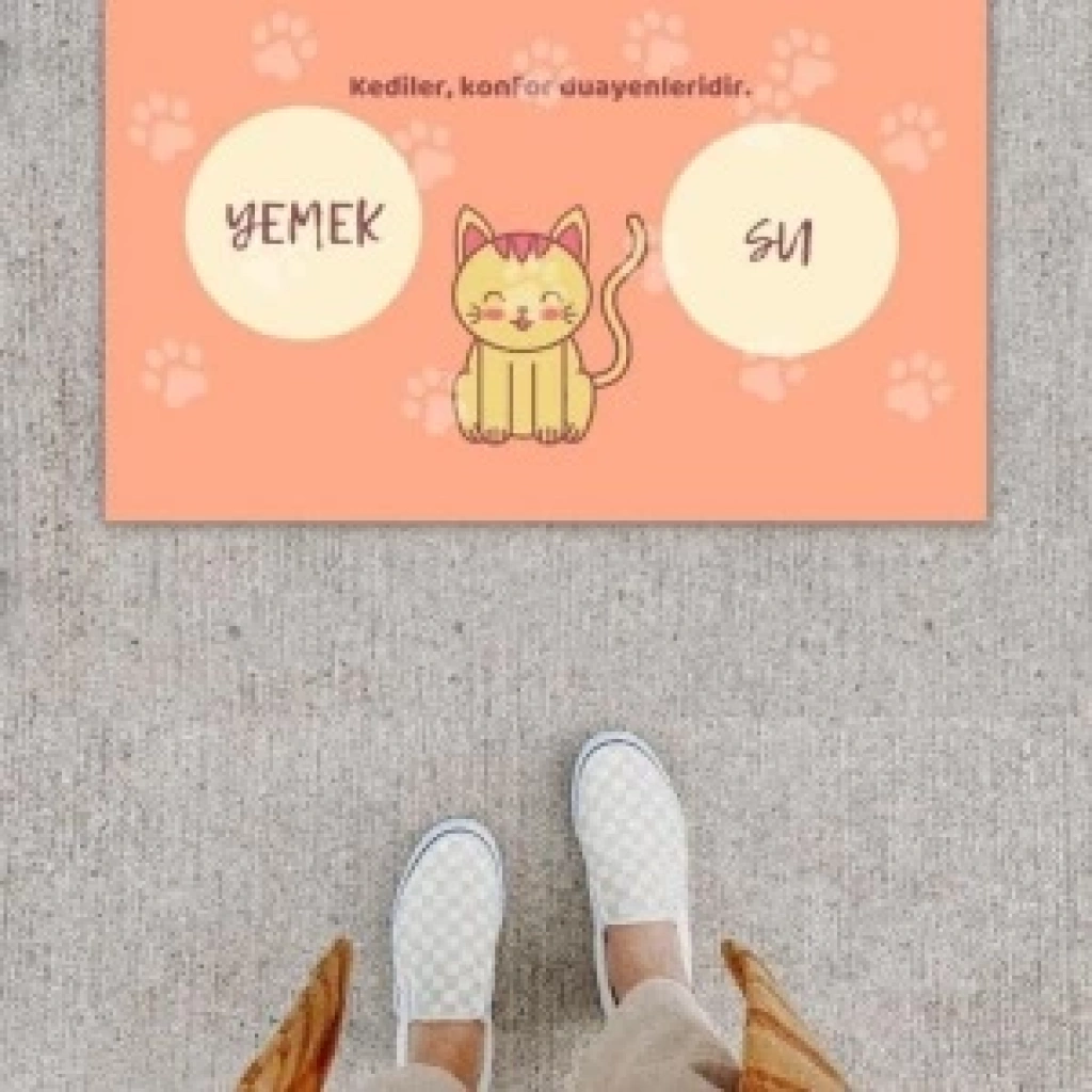 Dijital Baskı Dekoratif Kedi Yavruağzı Kapı Önü Paspası K-1212
