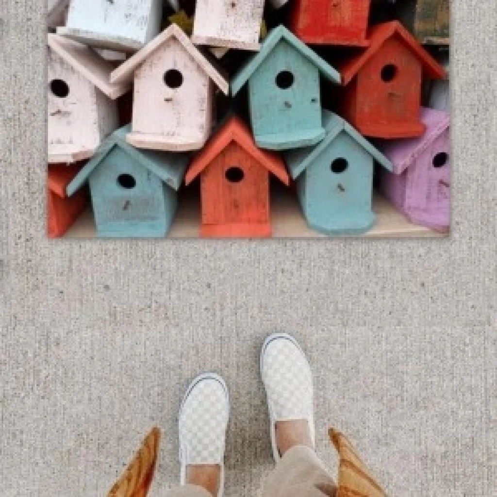 Dijital Baskı Dekoratif Kuş Evi Renkli Kapı Önü Paspası K-1218