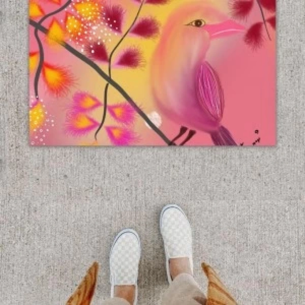Dijital Baskı Dekoratif Kuş Fuşya Kapı Önü Paspası K-1220