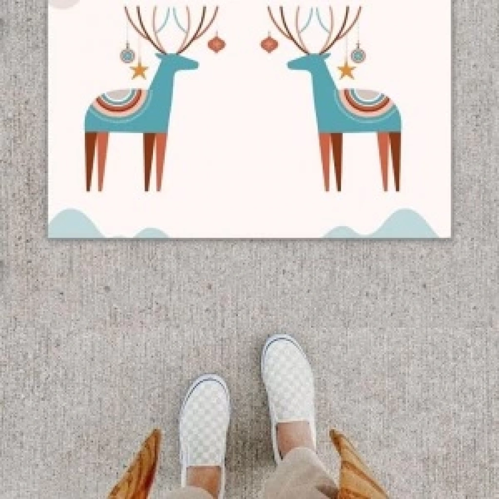 Dijital Baskı Dekoratif 'li Geyik Bej Kapı Önü Paspası K-1273