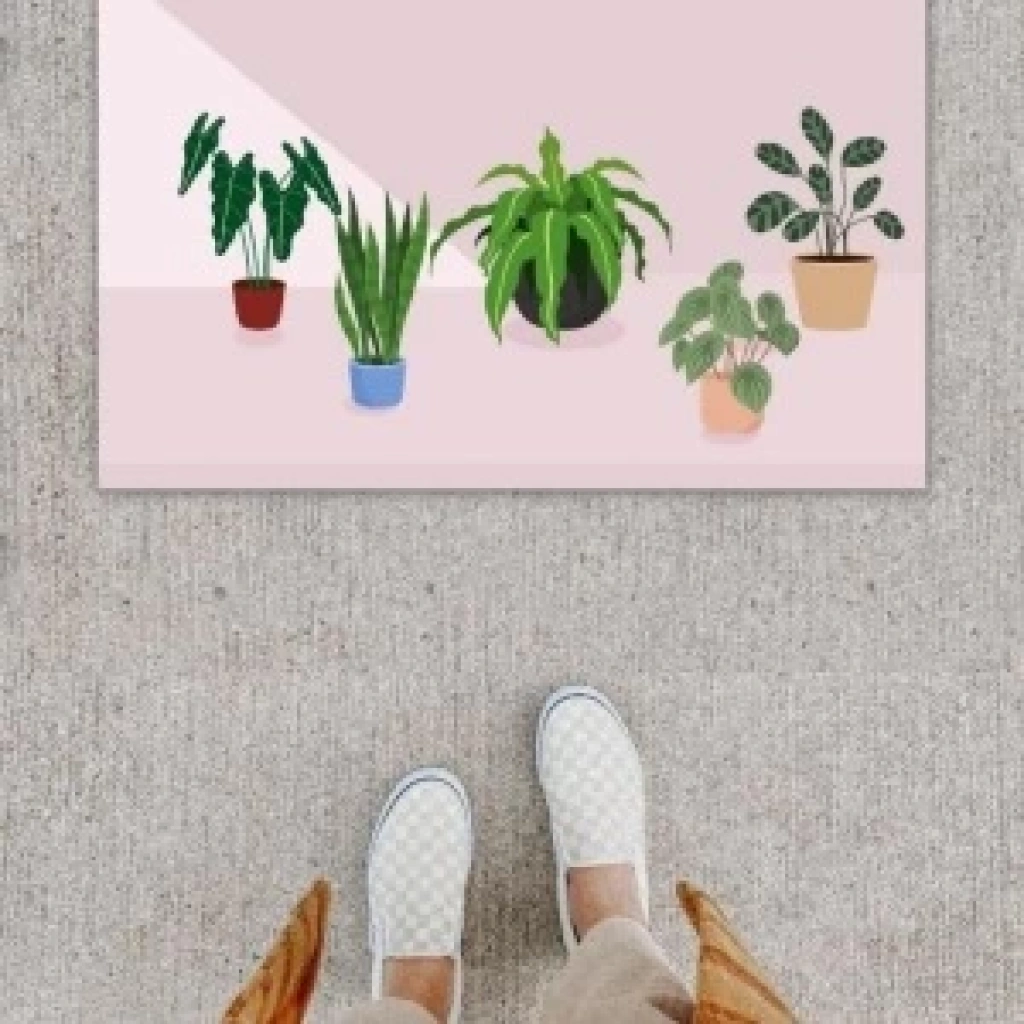 Dijital Baskı Dekoratif Saksı Bej Kapı Önü Paspası K-1207