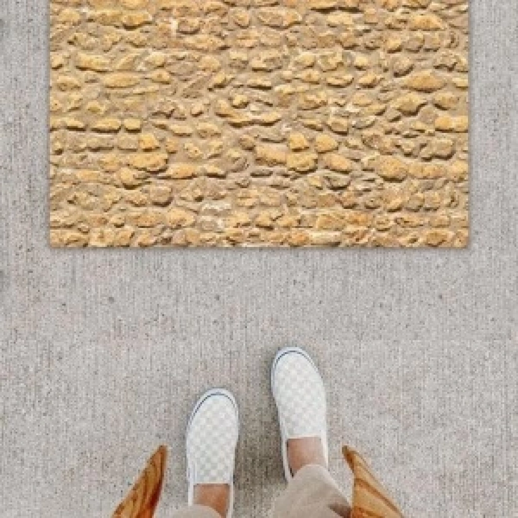 Dijital Baskı Dekoratif Taş Duvar Bej Kapı Önü Paspası K-1264