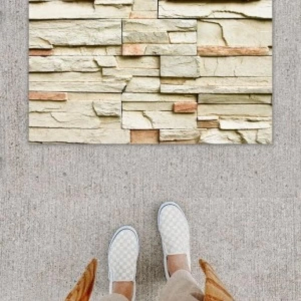Dijital Baskı Dekoratif Taş Duvar Çok Renkli Kapı Önü Paspası K-1255