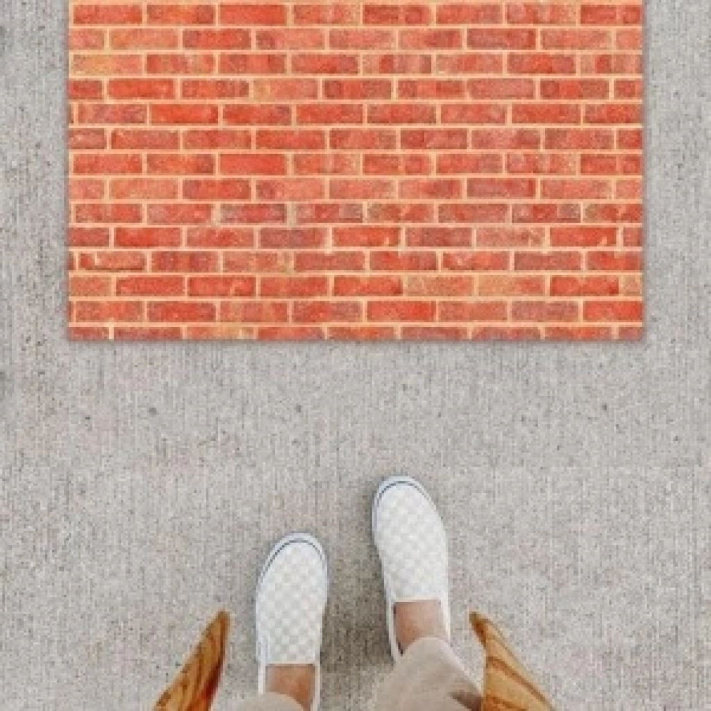 Dijital Baskı Dekoratif Tuğla Kırmızı Kapı Önü Paspası K-1262