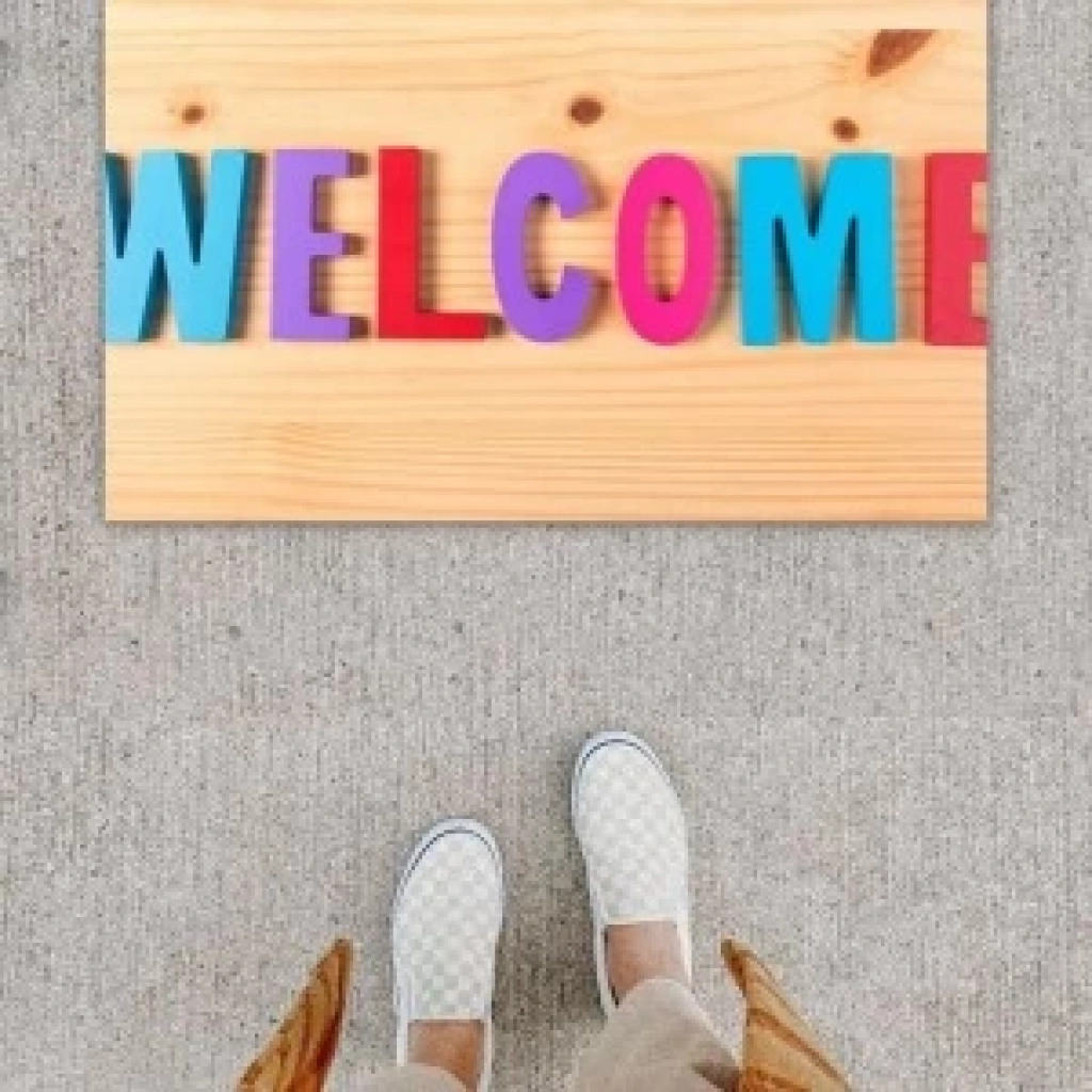 Dijital Baskı Dekoratif Welcome Ahşap Kapı Önü Paspası K-1247