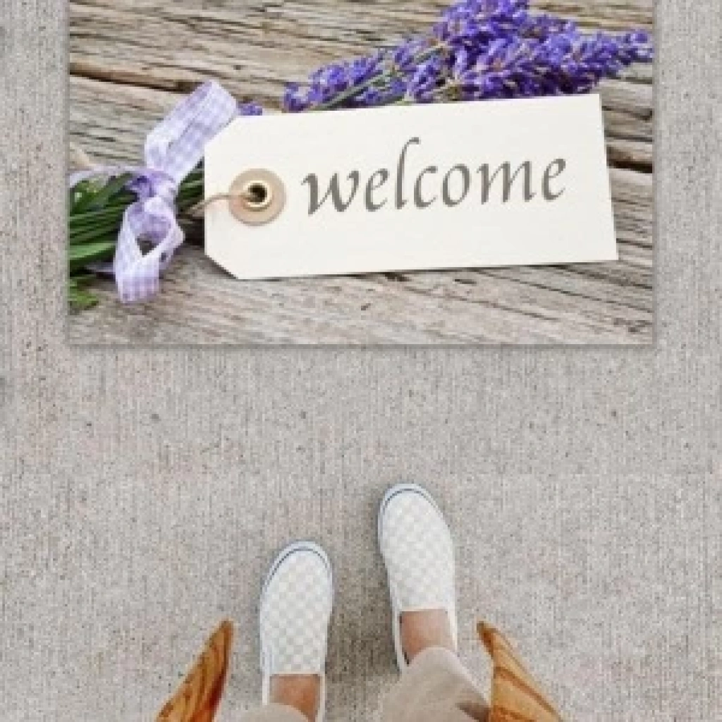 Dijital Baskı Dekoratif Welcome Bej Kapı Önü Paspası K-1252