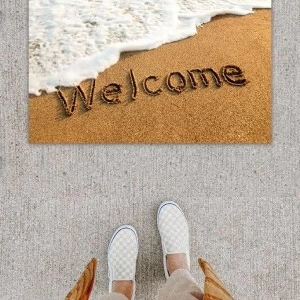 Dijital Baskı Dekoratif Welcome Beyaz Kapı Önü Paspası K-1253