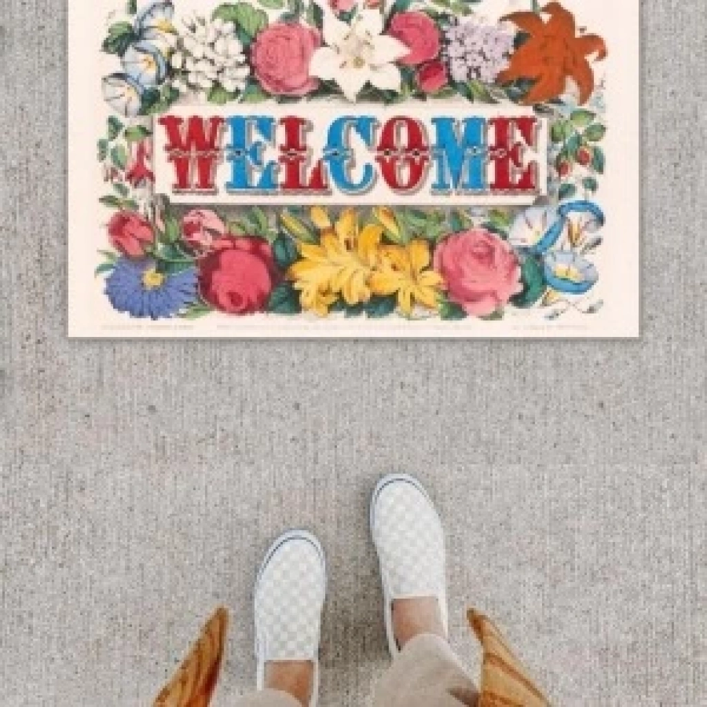 Dijital Baskı Dekoratif Welcome Renkli Kapı Önü Paspası K-1249