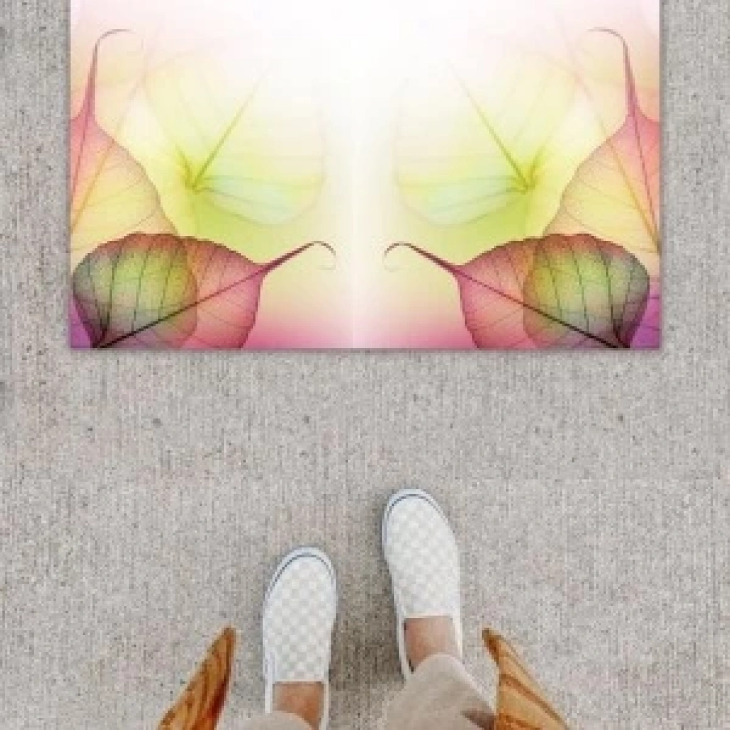 Dijital Baskı Dekoratif Yaprak Pembe Kapı Önü Paspası K-1243