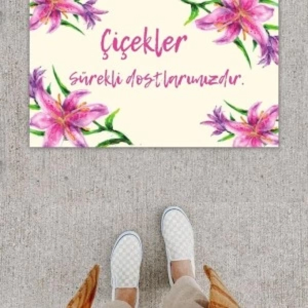 Kapı Önü Paspası Kişiye Özel Yazı Yazılır Koko Model Çiçek Şerit Pk-1526