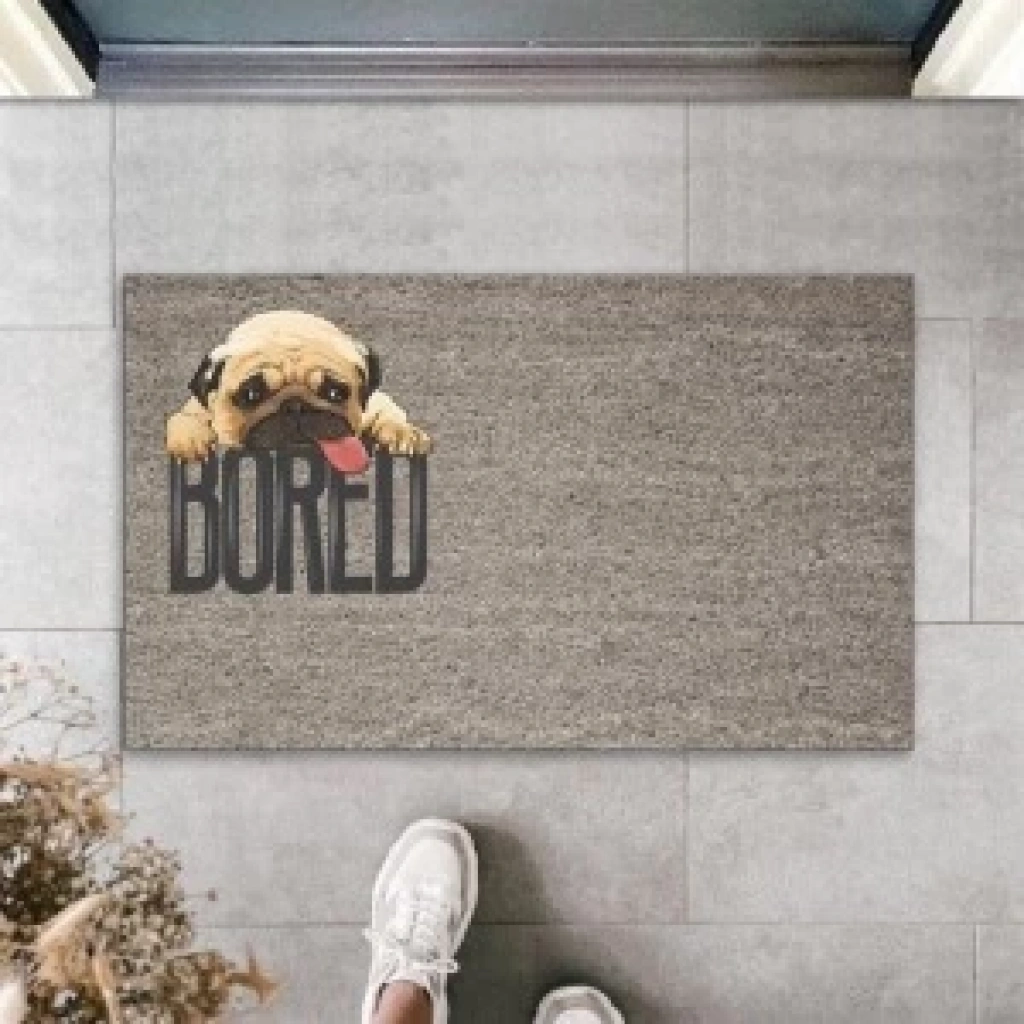 Dijital Baskı Gri Bored Köpekli Dekoratif Kapı Paspası K-2081