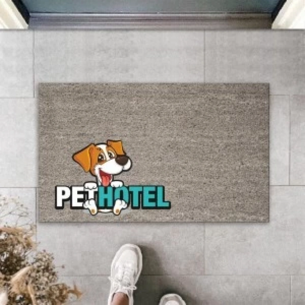 Dijital Baskı Gri Köpekli Pet Hotel Dekoratif Kapı Paspası K-2027