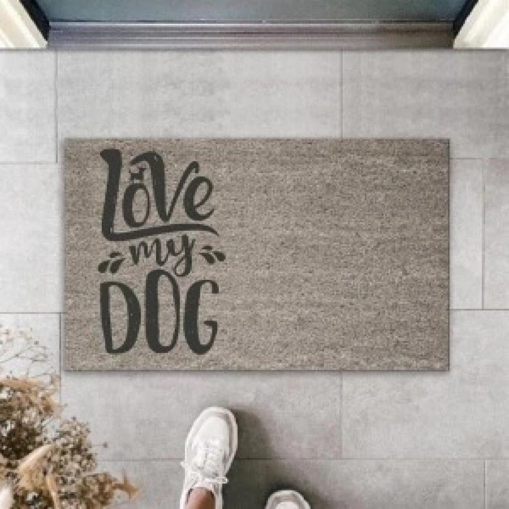 Dijital Baskı Gri Love My Dog Dekoratif Kapı Paspası K-2023