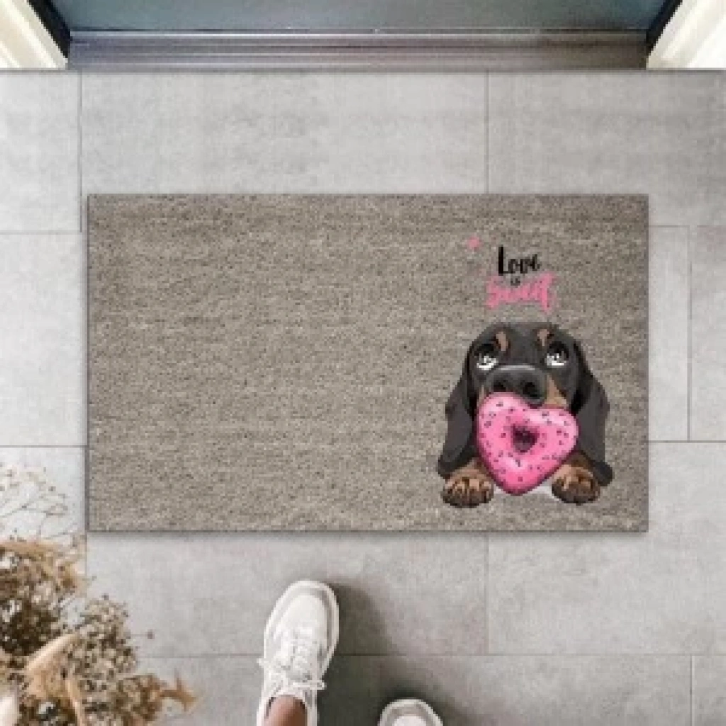 Dijital Baskı Gri Love Sweet Köpekli Dekoratif Kapı Paspası K-2057