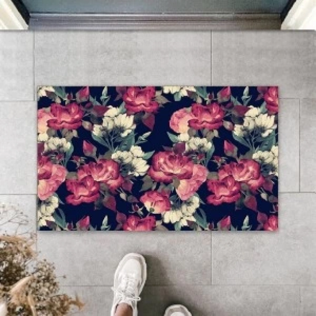 Dijital Baskı Gül Kurusu Büyük Çiçek Kapı Paspası