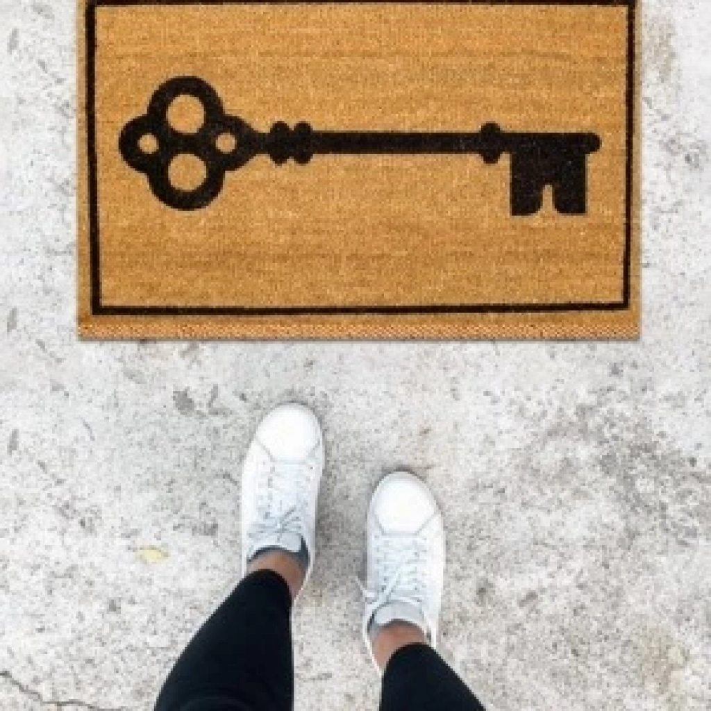 Dijital Baskı Kahverengi Anahtar Desen Kapı Önü Paspası K-1044
