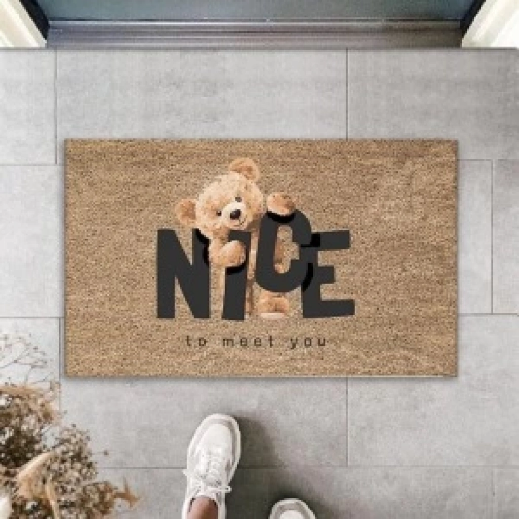 Dijital Baskı Kahverengi Ayıcık Tedy Bear Nice Kapı Paspası K-3009