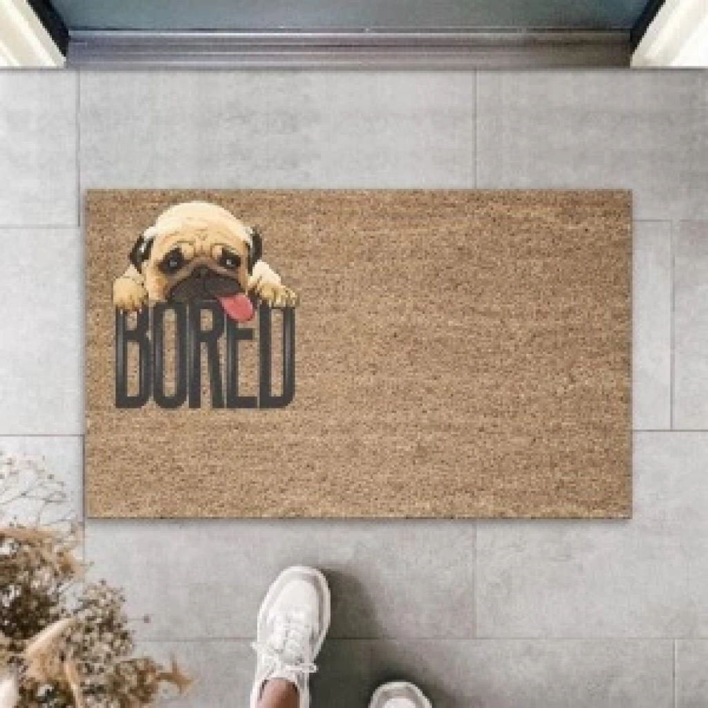 Dijital Baskı Kahverengi Bored Köpekli Dekoratif Kapı Paspası K-2080