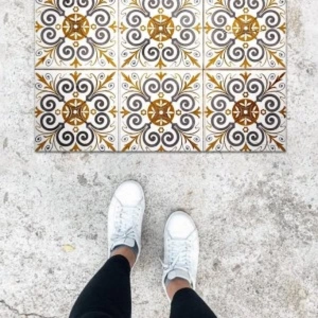 Dijital Baskı Kahverengi Çini Desen Kapı Önü Paspası K-1068