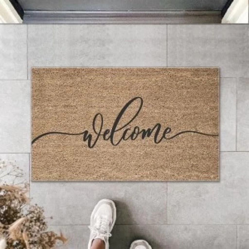 Dijital Baskı Kahverengi İtalik Yazılı Welcome Dekoratif Kapı Paspası K-2004