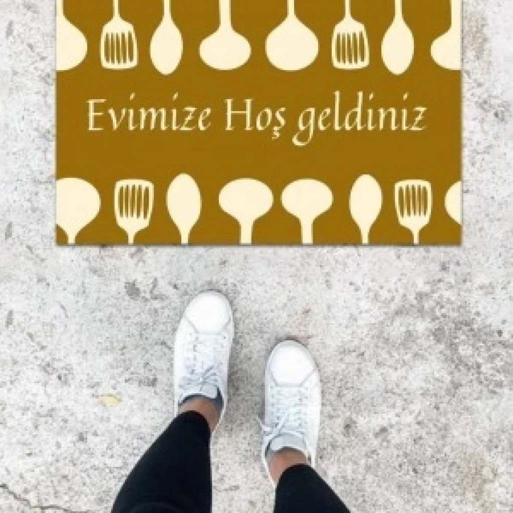 Dijital Baskı Kahverengi Kaşık Desen Kapı Önü Paspası K-1041