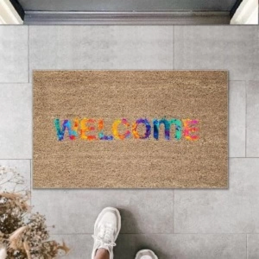 Dijital Baskı Kahverengi Renkli Welcome Dekoratif Kapı Paspası K-2002
