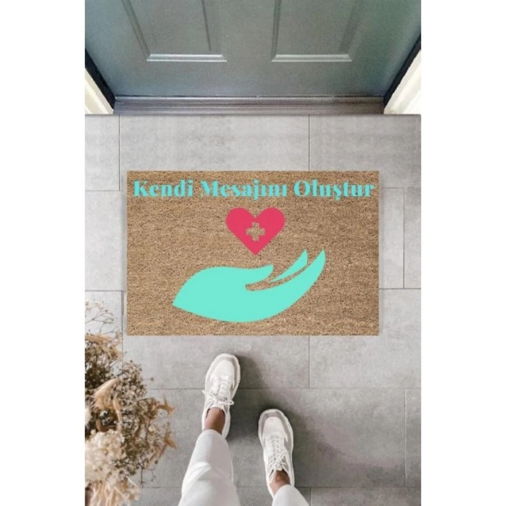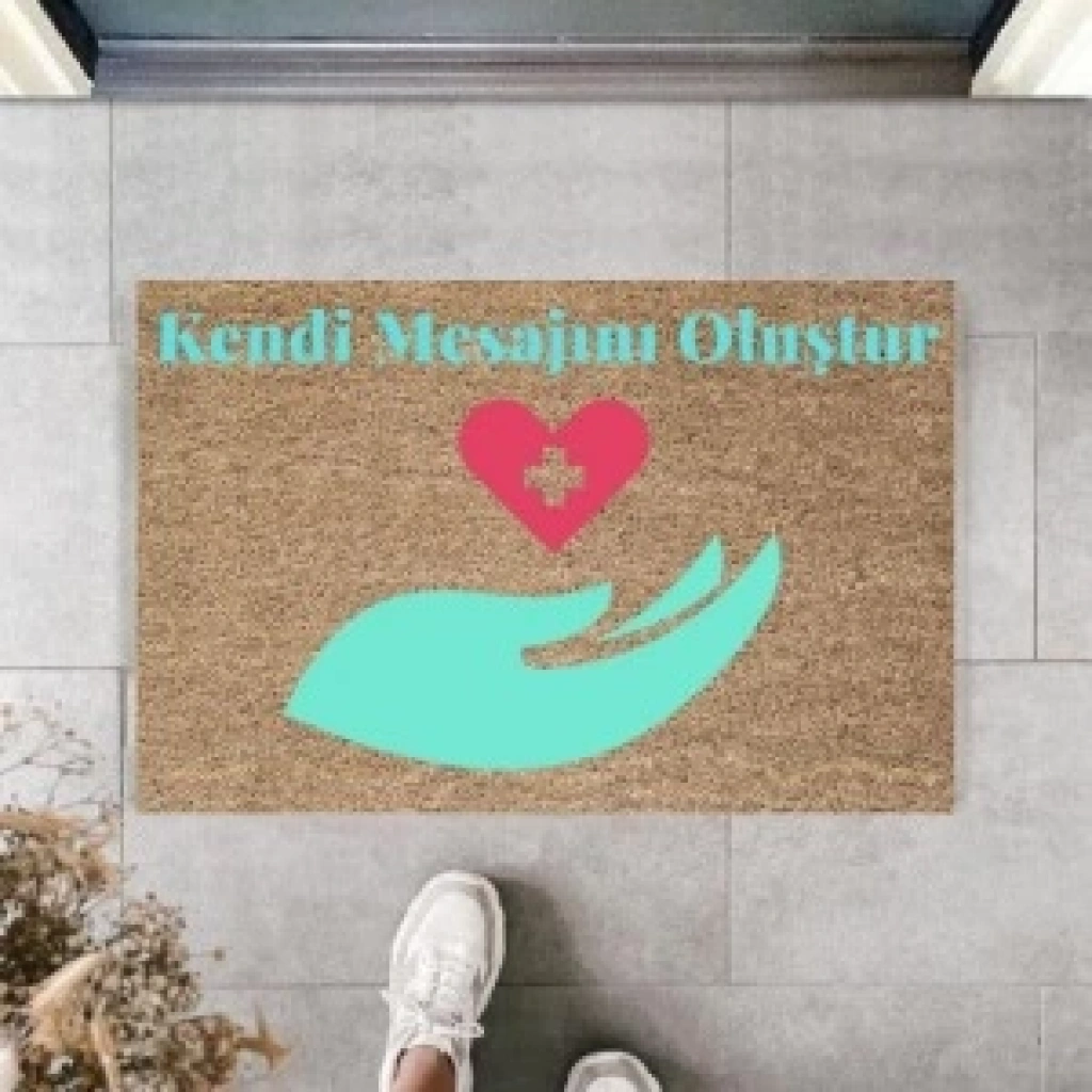 Kapı Önü Paspası Kişiye Özel Yazı Yazılır Koko Model Kalp Çiçek Desenli Pk-1515
