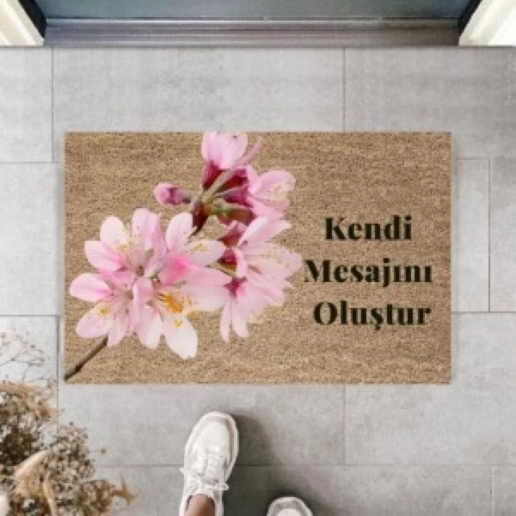 Kapı Önü Paspası Kişiye Özel Yazı Yazılır Koko Model Çiçek Şerit Pk-1526