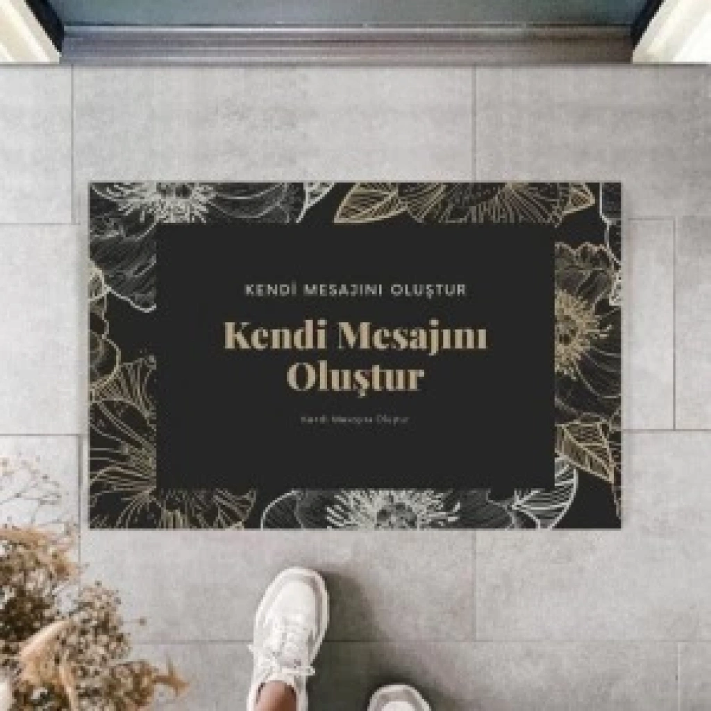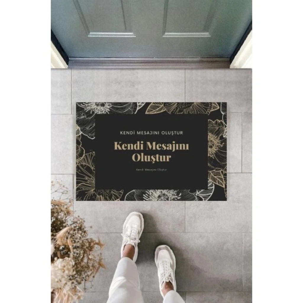 Kapı Önü Paspası Kişiye Özel Yazı Yazılır Koko Model Çiçek Şerit Pk-1526