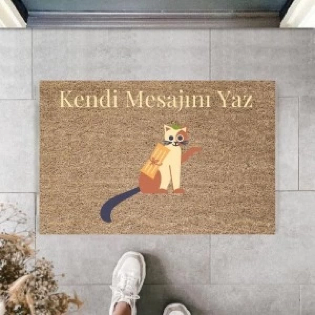 Kapı Önü Paspası Özel Tasarım Koko Model Kedi Bende Burdayım Ki Pk-1520