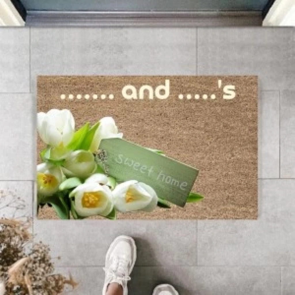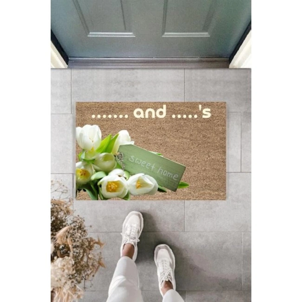 Kapı Önü Paspası Kişiye Özel Yazı Yazılır Koko Model Çiçek Şerit Pk-1526