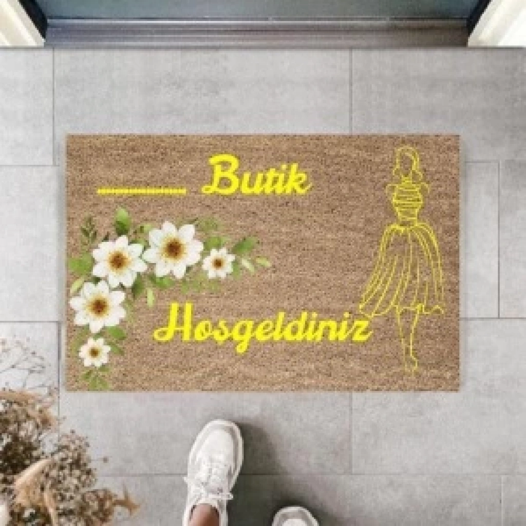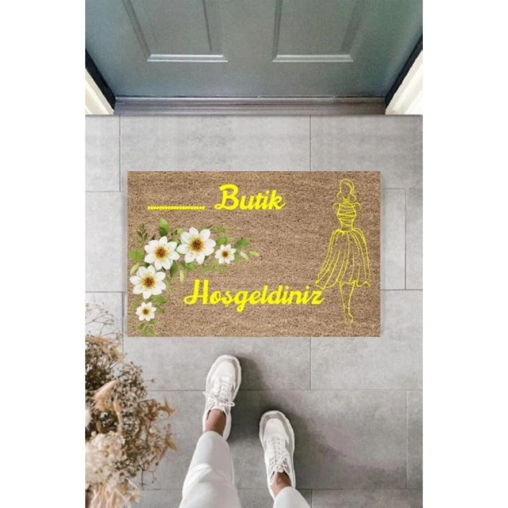 Kapı Önü Paspası Kişiye Özel Yazı Yazılır Koko Model Çiçek Şerit Pk-1526