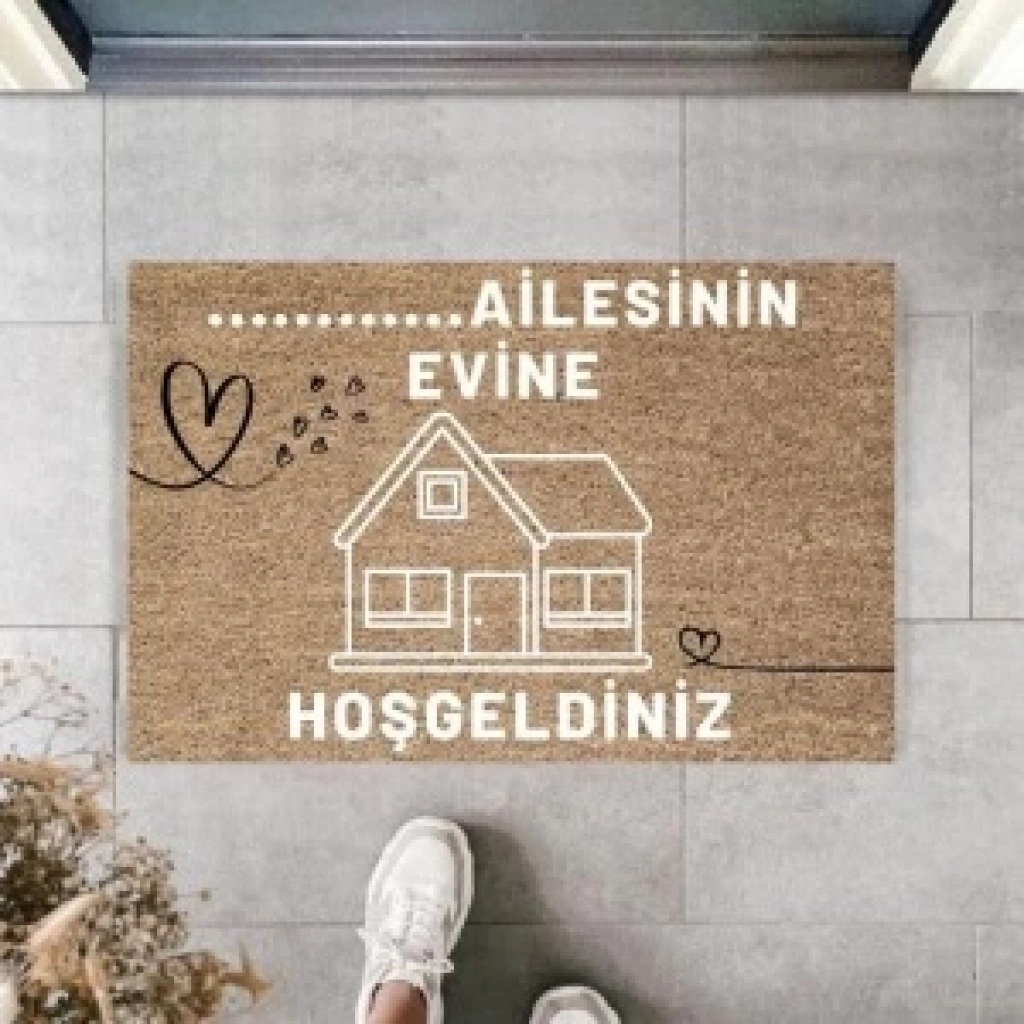 Kapı Önü Paspası Özel Tasarım Koko Model Çatı Evimize Hoşgeldiniz Pk-1524