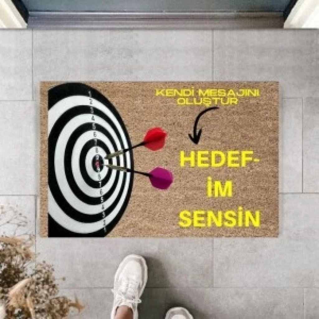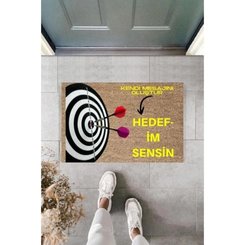Kapı Önü Paspası Kişiye Özel Yazı Yazılır Koko Model Kalp Çiçek Desenli Pk-1515