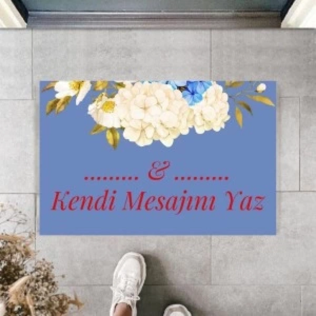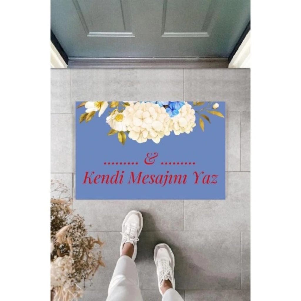 Kapı Önü Paspası Kişiye Özel Yazı Yazılır Koko Model Çiçek Şerit Pk-1526