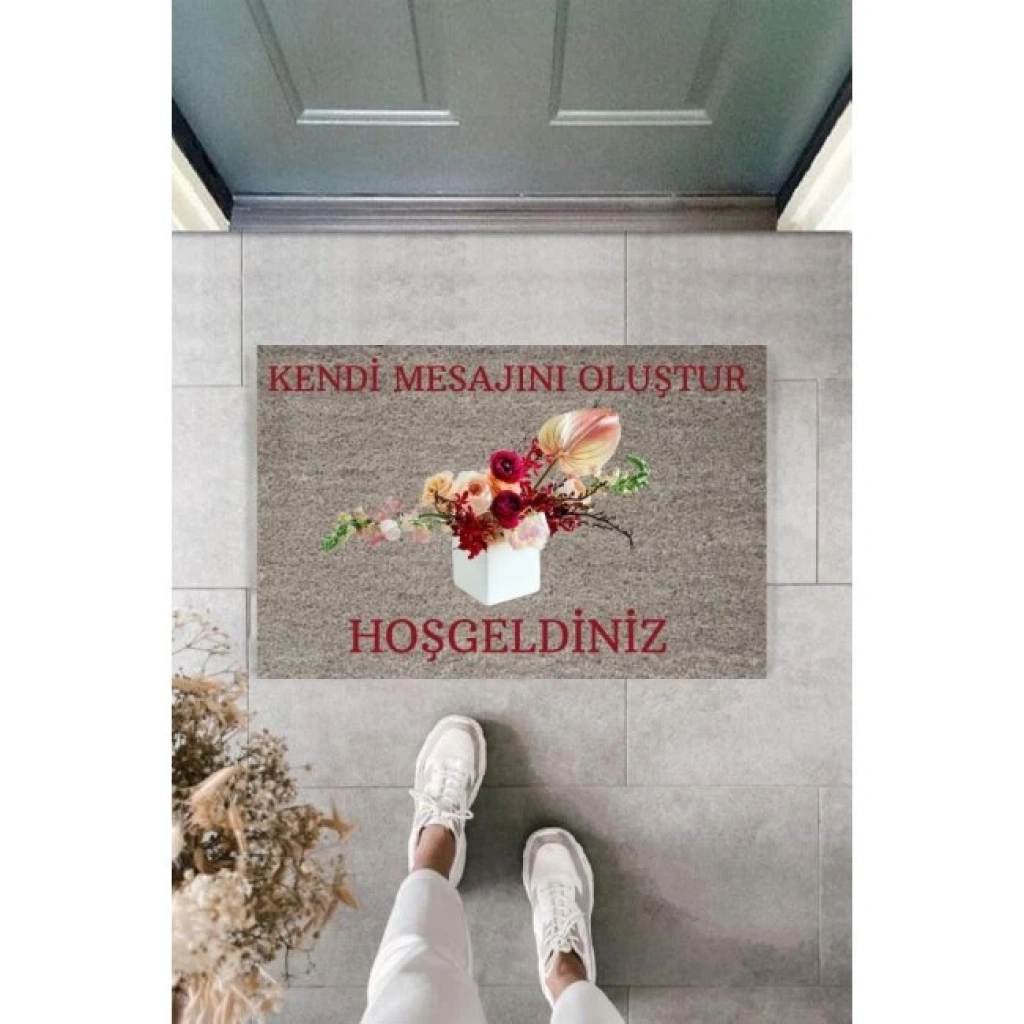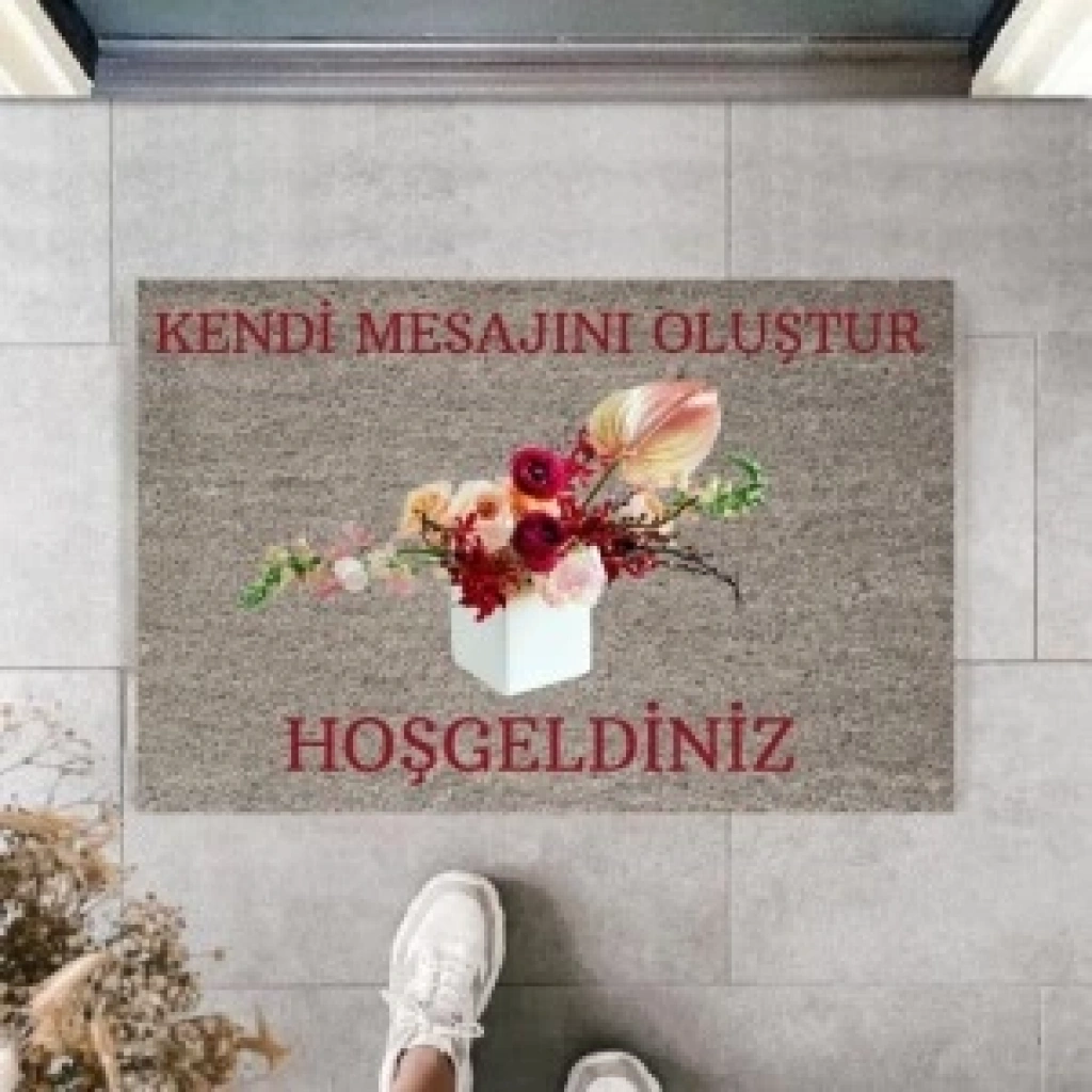 Kapı Önü Paspası Kişiye Özel Yazı Yazılır Koko Model Çiçek Şerit Pk-1526
