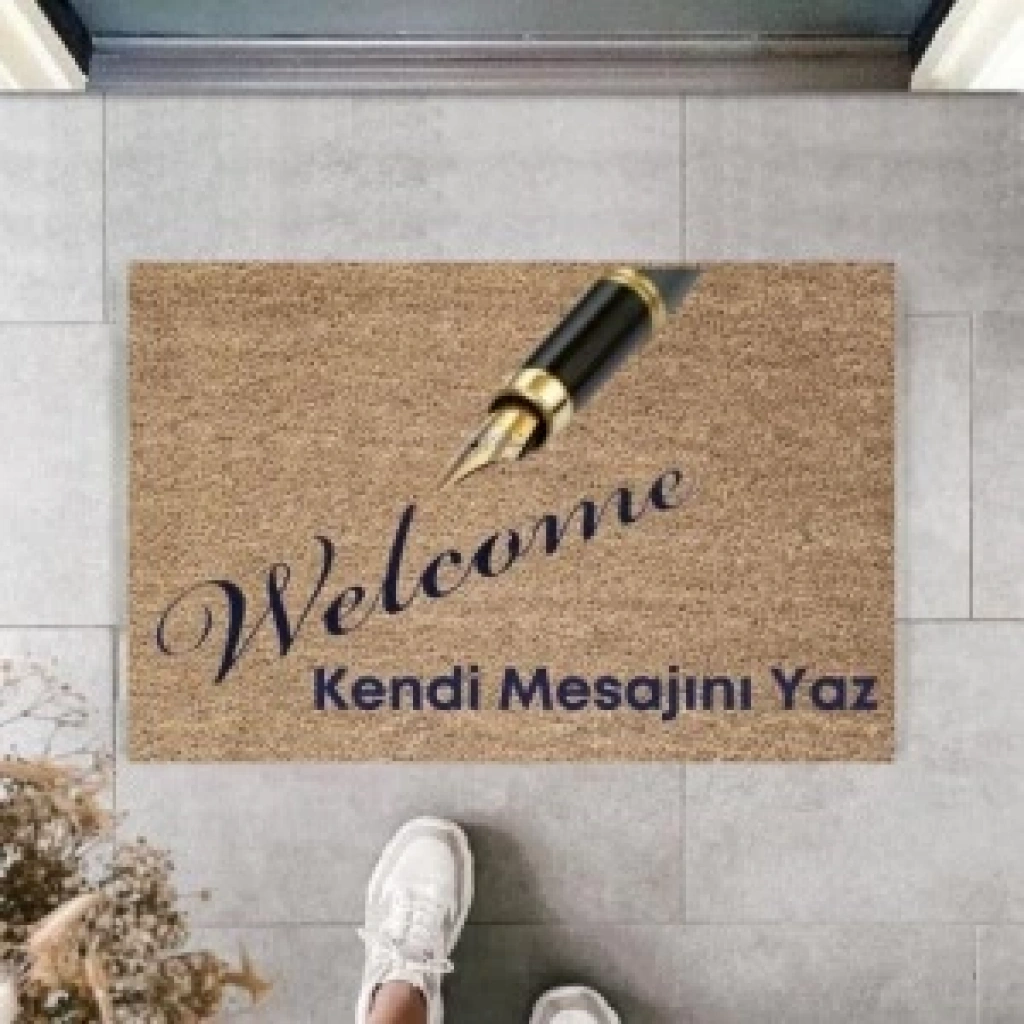 Kapı Önü Paspası Kişiye Özel Yazı Yazılır Koko Model Çiçek Şerit Pk-1526