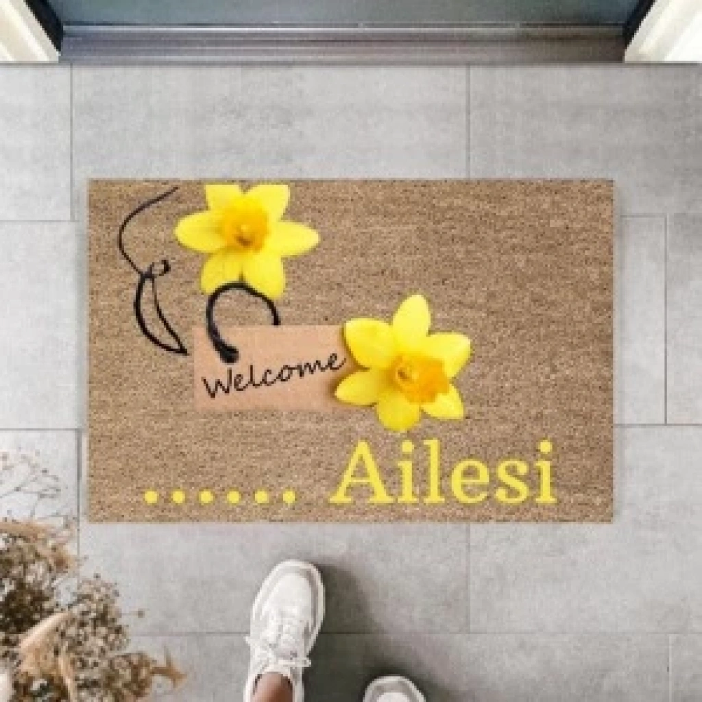 Kapı Önü Paspası Kişiye Özel Yazı Yazılır Koko Model Yuvarlak Çiçek Pk-1525