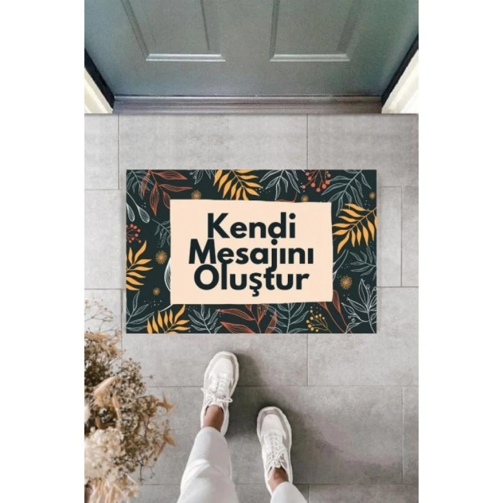 Kapı Önü Paspası Kişiye Özel Yazı Yazılır Koko Model Çiçek Şerit Pk-1526