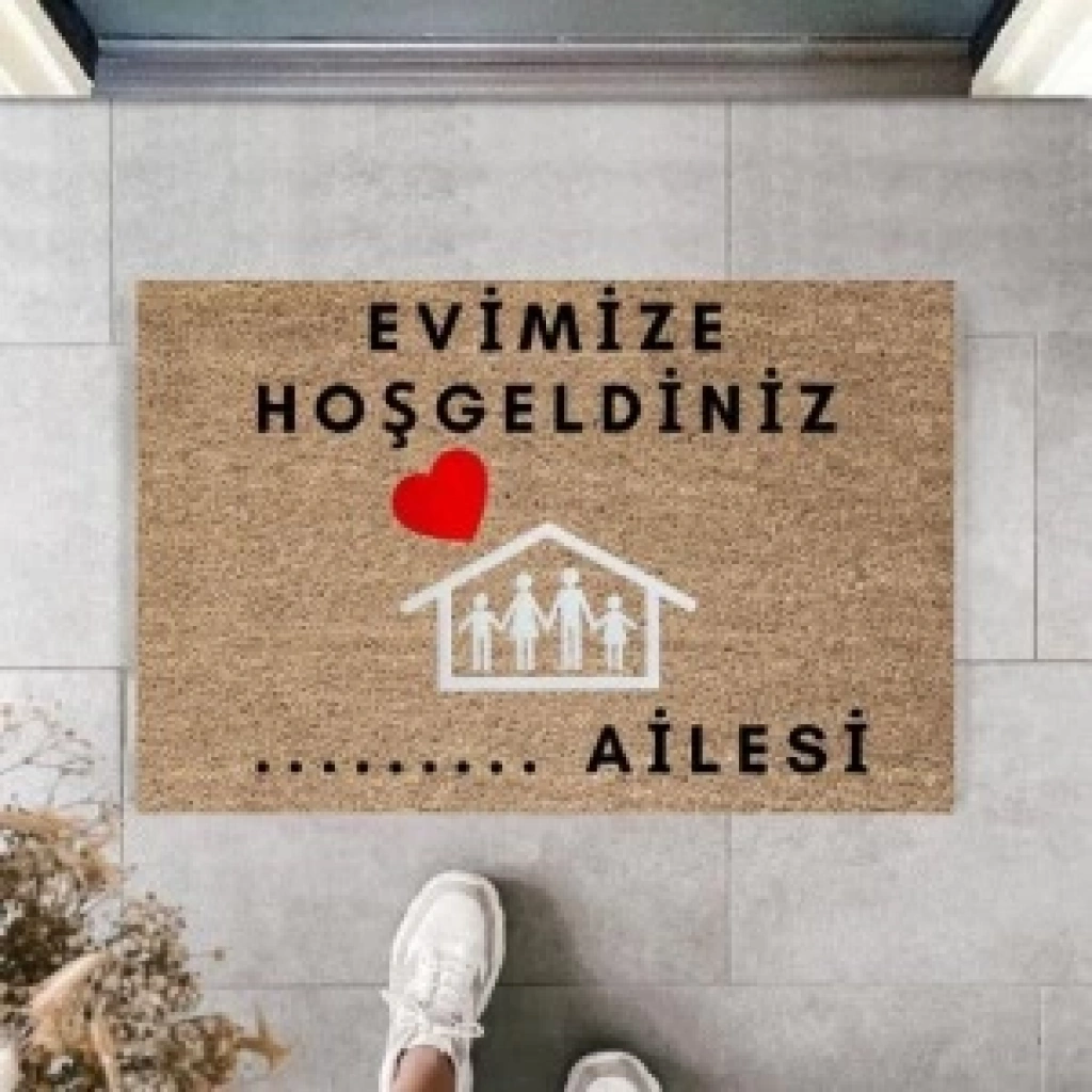 Kapı Önü Paspası Özel Tasarım Koko Model Çatı Evimize Hoşgeldiniz Pk-1524