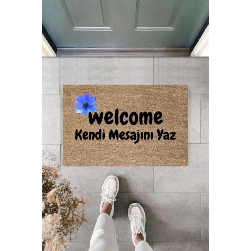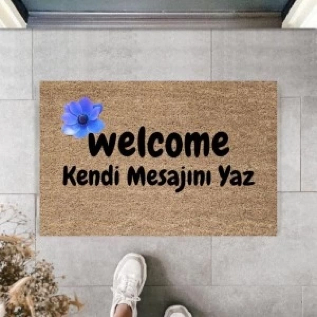 Kapı Önü Paspası Kişiye Özel Yazı Yazılır Koko Model Çiçek Şerit Pk-1526