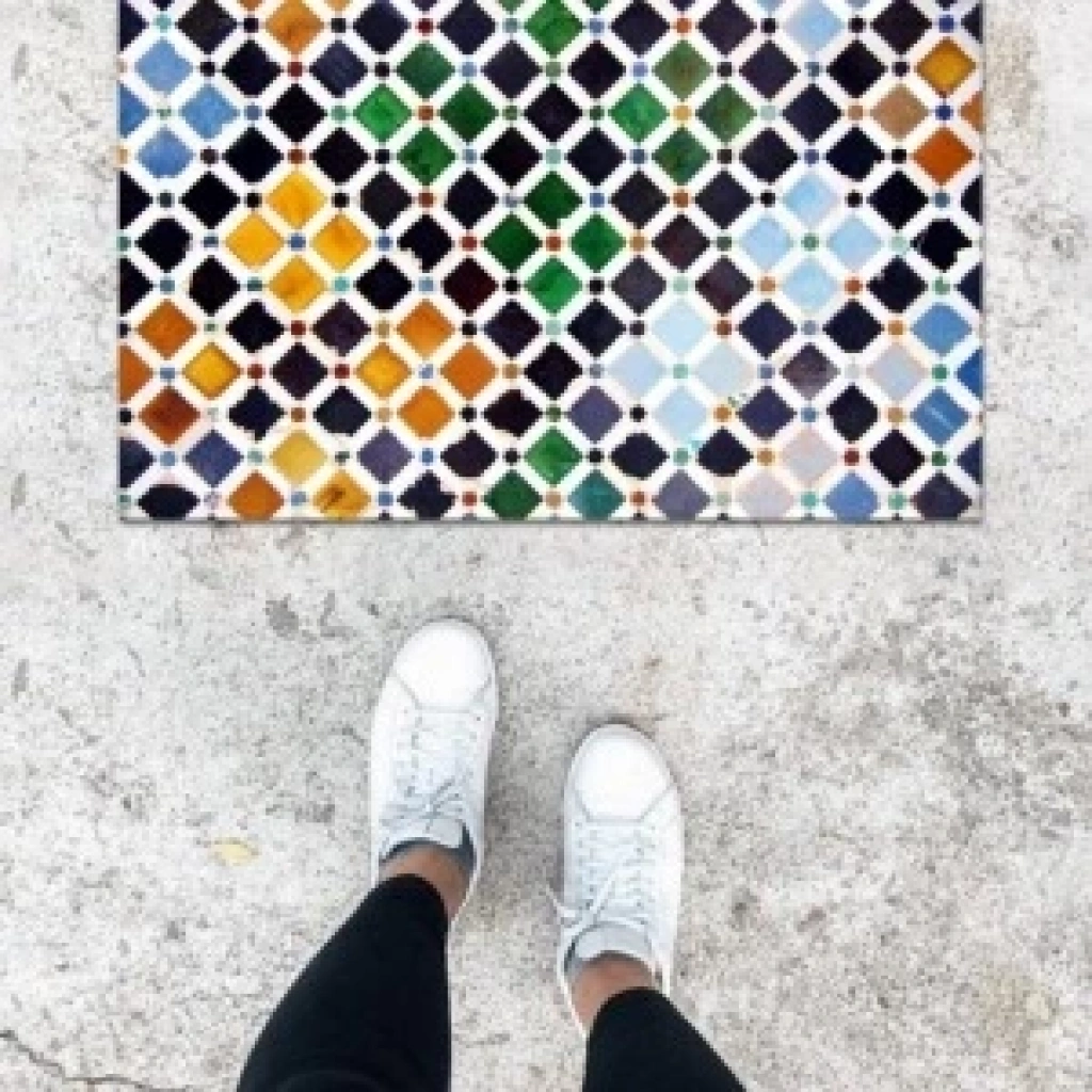 Dijital Baskı Lacivert Kare Desen Kapı Önü Paspası K-1069