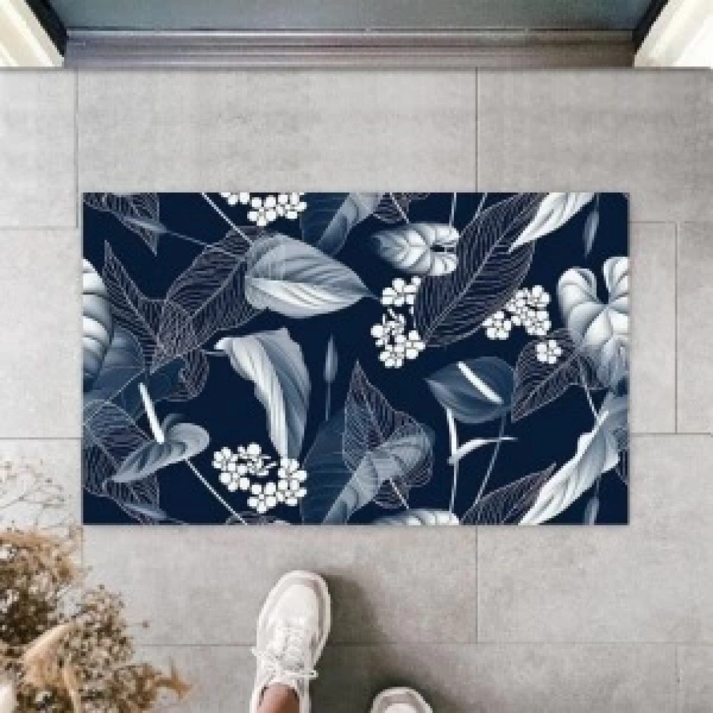 Dijital Baskı Lacivert Yaprak Paspas K-3098